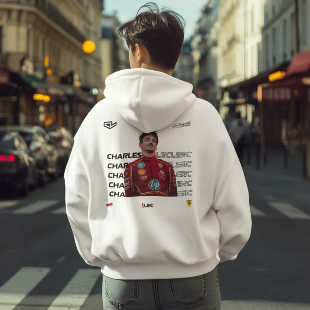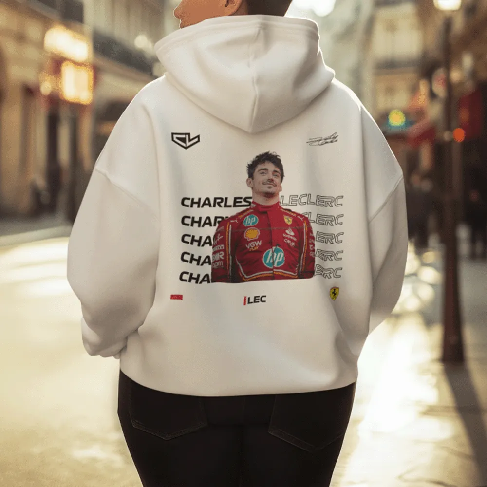 This Charles Leclerc hoodie pays tribute to his 2024 Monaco Grand Prix performance, featuring a striking design with an image of him in his Ferrari racing suit on the podium. The artwork captures the essence of his home race, blending premium materials with bold graphics for a stylish and comfortable fit. Whether you're celebrating his Monaco triumph or simply showcasing your passion for Formula 1, this hoodie is a must-have for any fan.